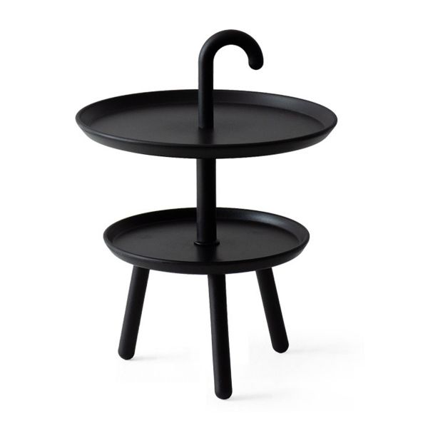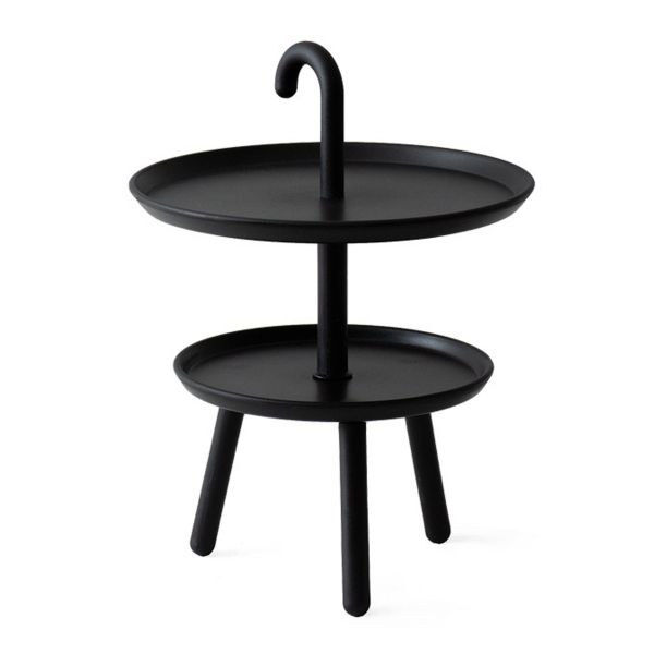 - natural wood and white metal finish