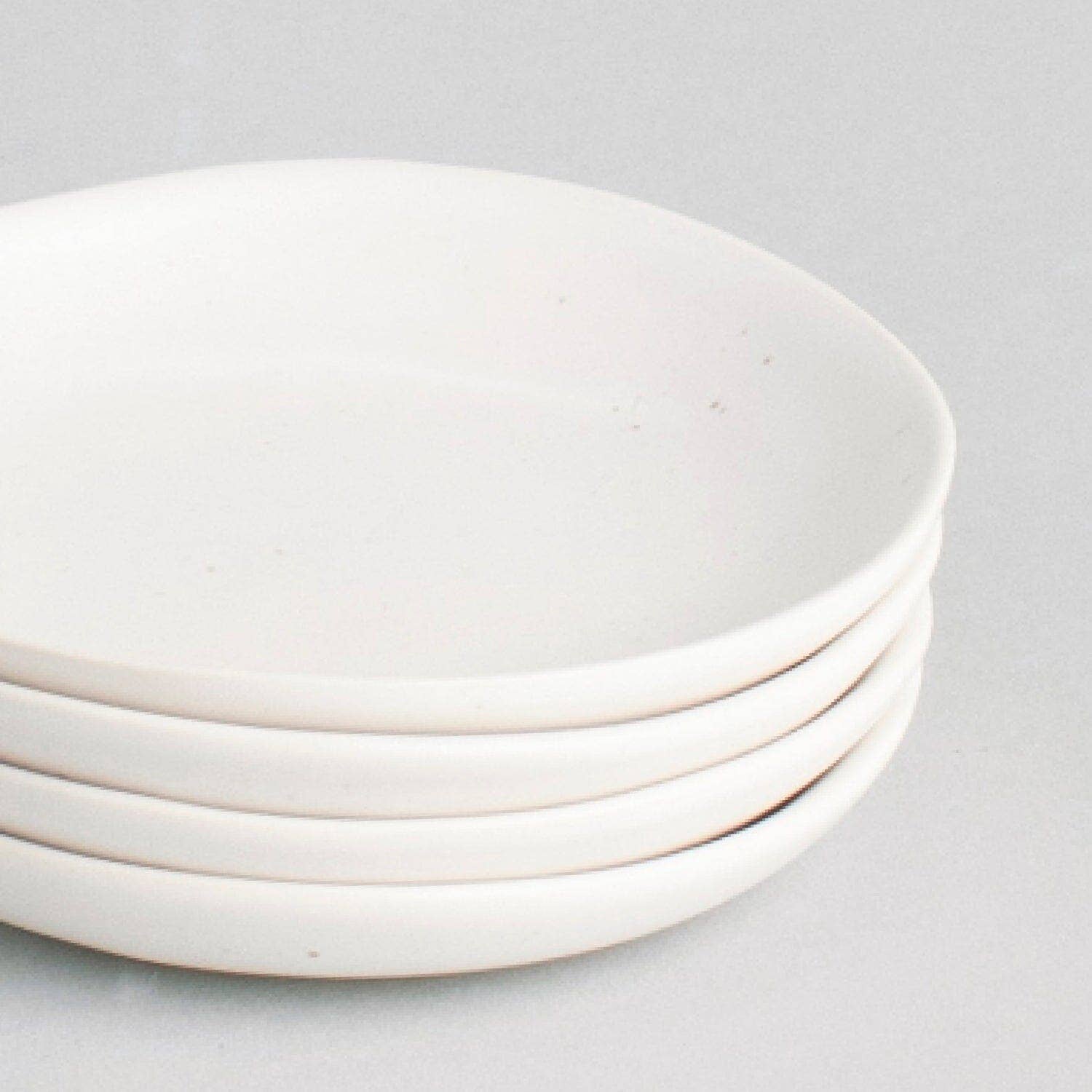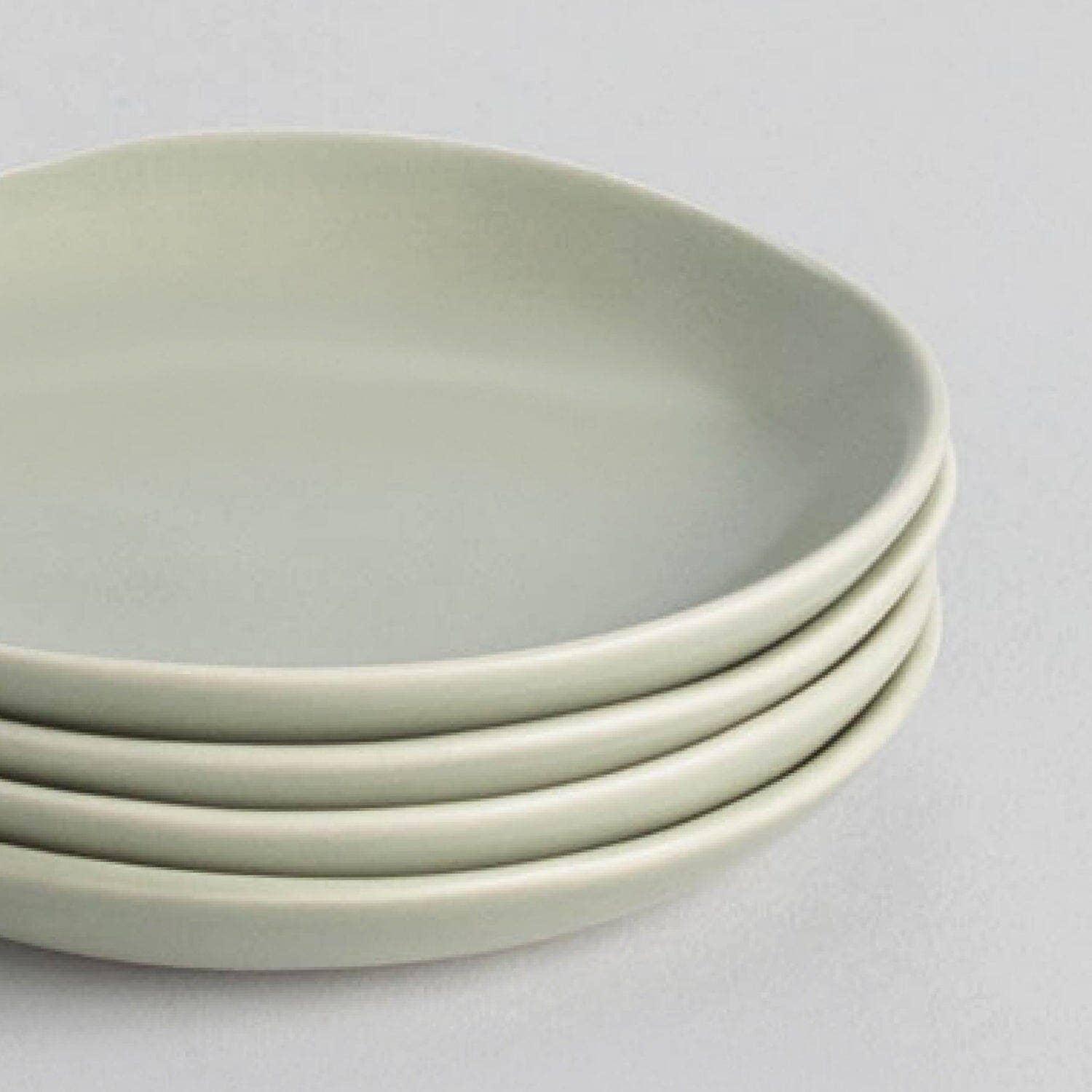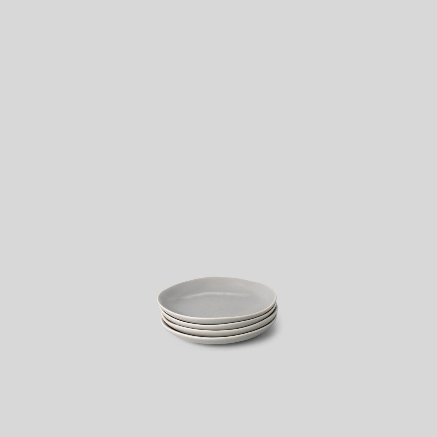 Our most petite plates to date. Use these small saucers to set garnishes on the table, for soy sauce on your next sushi night, or to house jewelry on the vanity shelf. * Each plate is organically shaped and one of a kind * Hand-finished in Portugal * Comes in a set of 4 Stoneware contains natural flecks that come to the surface during firing and may show through lighter glazes. Slight variations may occur. Materials Artisan crafted stoneware Local Portuguese clay Lead-free semi-matte glaze Designed in Vancouver, crafted in Portugal Dimensions 4 in. diameter 0.75 in. height 0.2 lb. each Our dinnerware is durable and easy to care for.